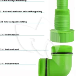 - Slangaansluiting: 25/32/38 mm