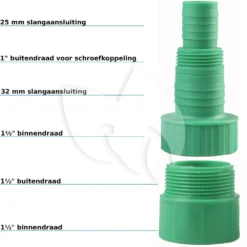 - Slangaansluiting: 25/32 mm