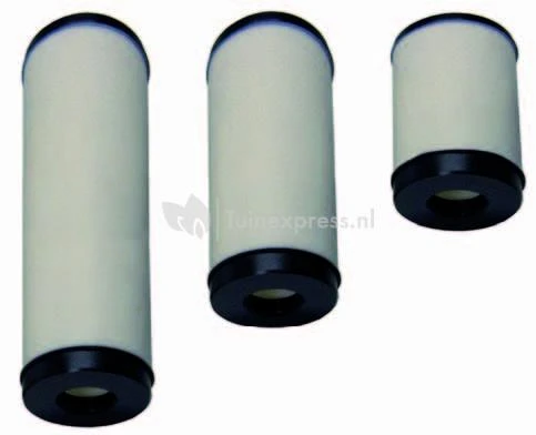 Deze unieke uitstromers zijn van een speciale HDPE (high density polyethylene) gemaakt en geven buitengewone fijne luchtbelletjes. Door een speciaal proces is de poriëngrootte aan de binnenzijde 350 micron en aan de buitenzijde 120 micron. Drukverlies is kleiner dan 0,015 bar (15 cm). Montage via vaste PVC leiding (voor gebruik met luchtslang uitstromer vullen met grof grind om ze te laten zinken).