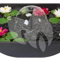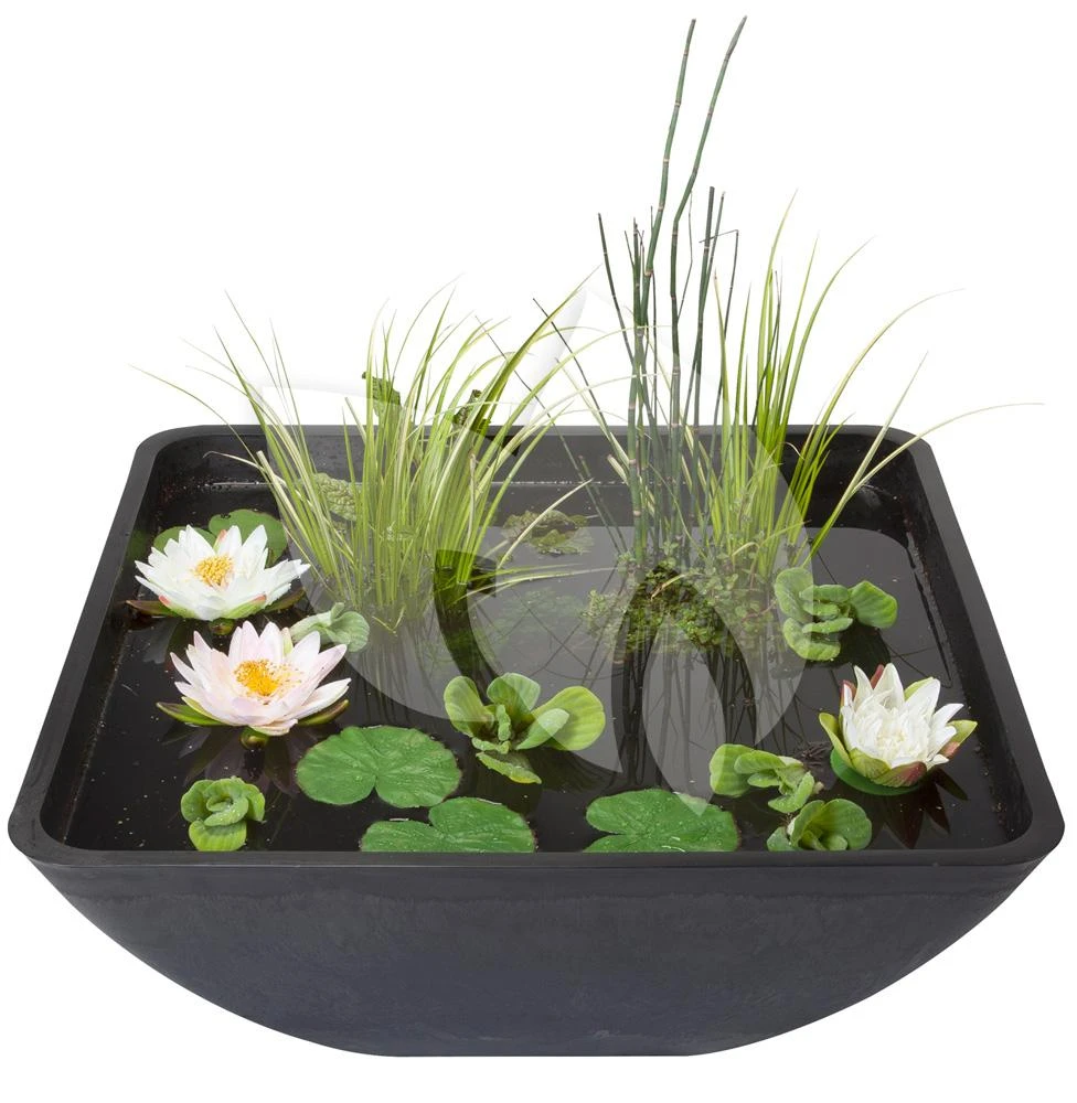 De Fountain Pond is gemaakt van licht materiaal, polystone, waardoor u de vijver moeiteloos kunt verplaatsen. De terrasvijver wordt geleverd met fonteinpomp en plantmand waarmee u de vijver kunt vullen. Een aanrader: moerasplanten maken de terrasvijver echt tot een sfeervol element in uw tuin of huis! Voor het houden van helder en algenvrij water zijn zuurstofplanten een goede optie. De terrasvijver is ook beschikbaar in een kleiner formaat en in een ronde uitvoering.